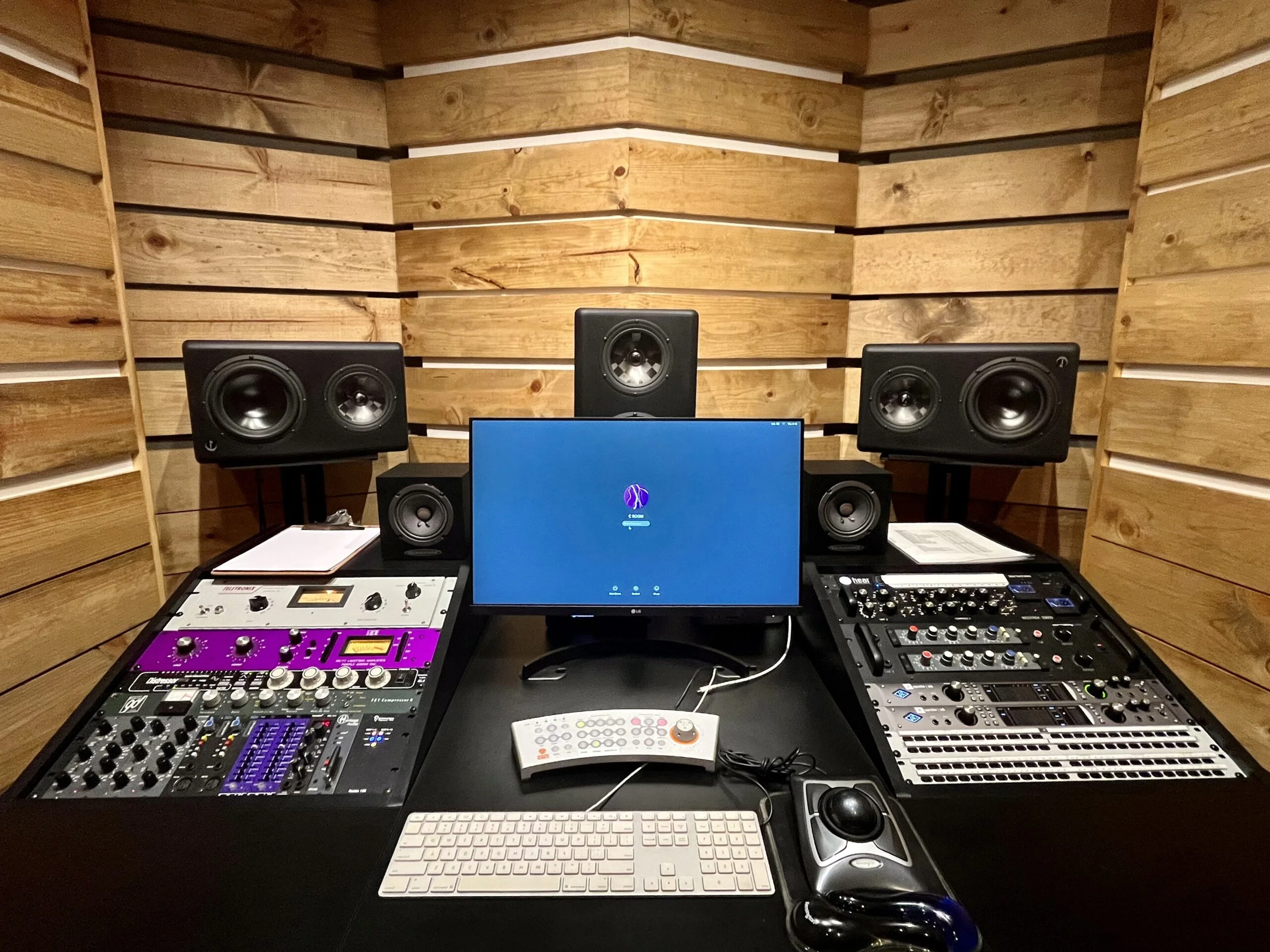 Studio C is a 400 square foot, ATMOS-equipped studio, featuring great equipment, a comfortable control room, and a live room that works perfectly for anything from vocals to guitars, or even drums.
